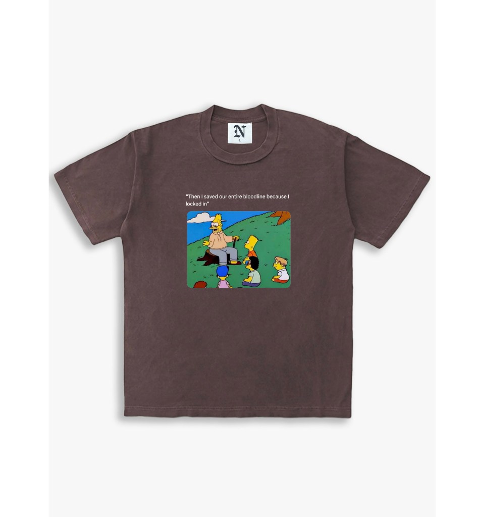 This tan graphic shirt features the ‘0044 Simpsons Locked In Purple’ design, combining modern style with bold expression.